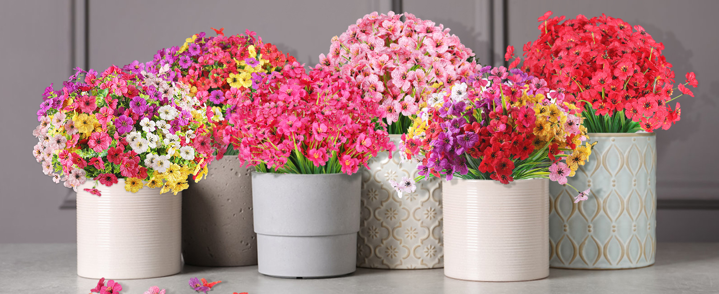 ✅Materials:Silk flowers + UV-resistant plastic.