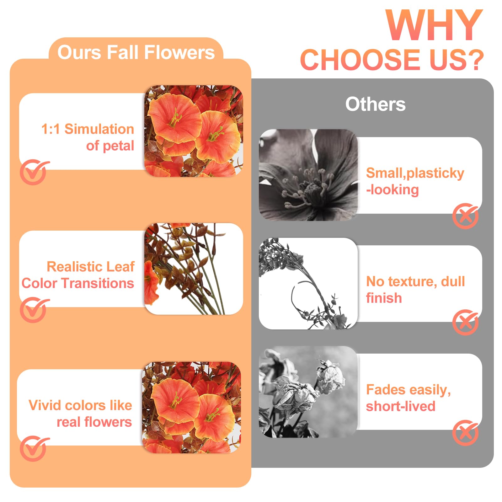 ♻️Eco-Friendly & Long-Lasting - Made from premium non-toxic and environmentally friendly materials, these flowers offer a sustainable and cost-effective alternative to real plants while maintaining their fresh and elegant appearance for years.