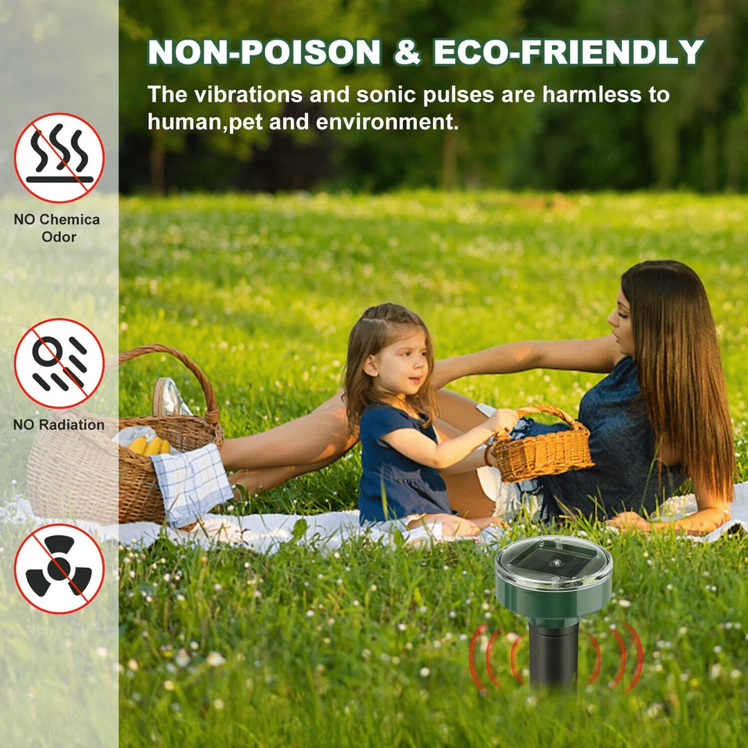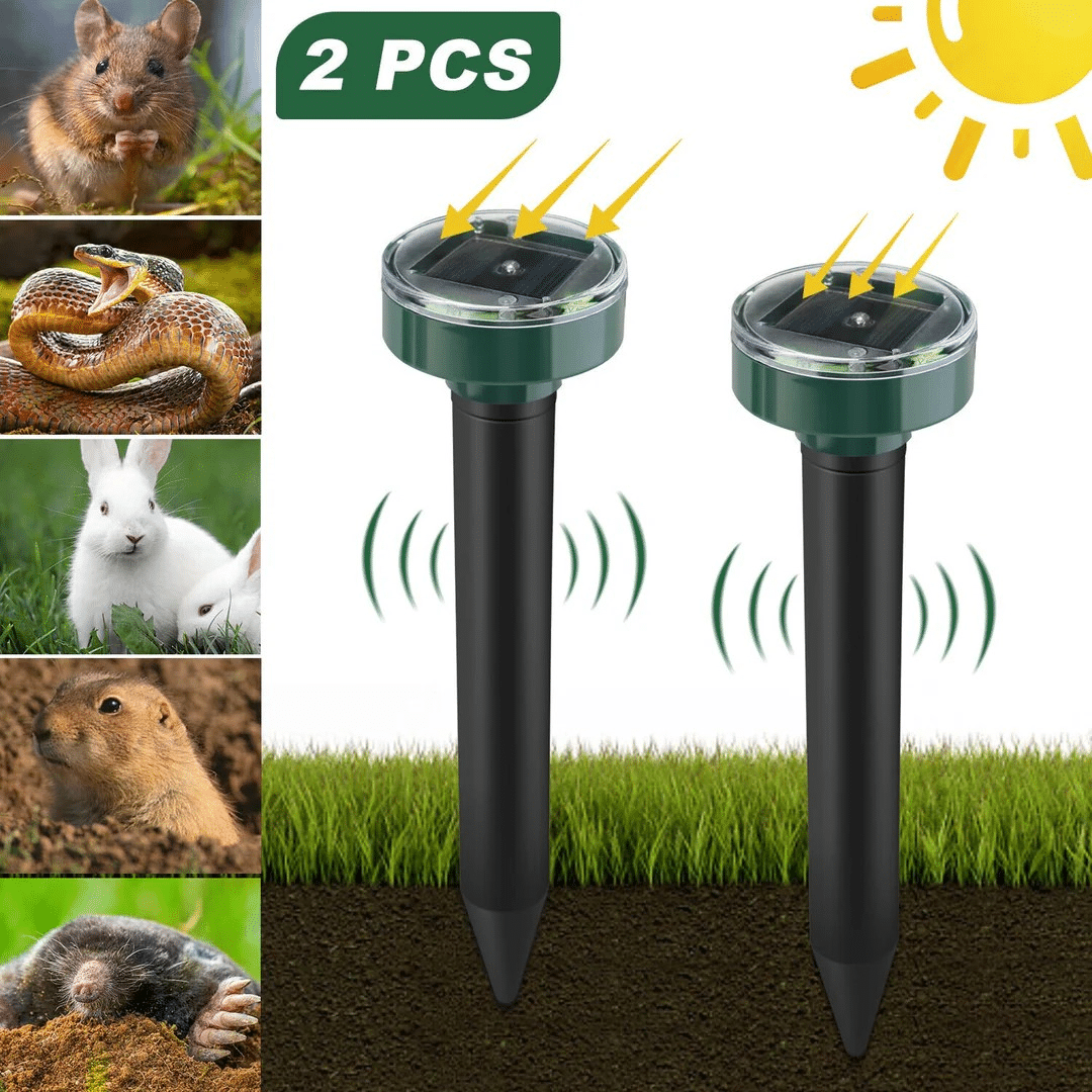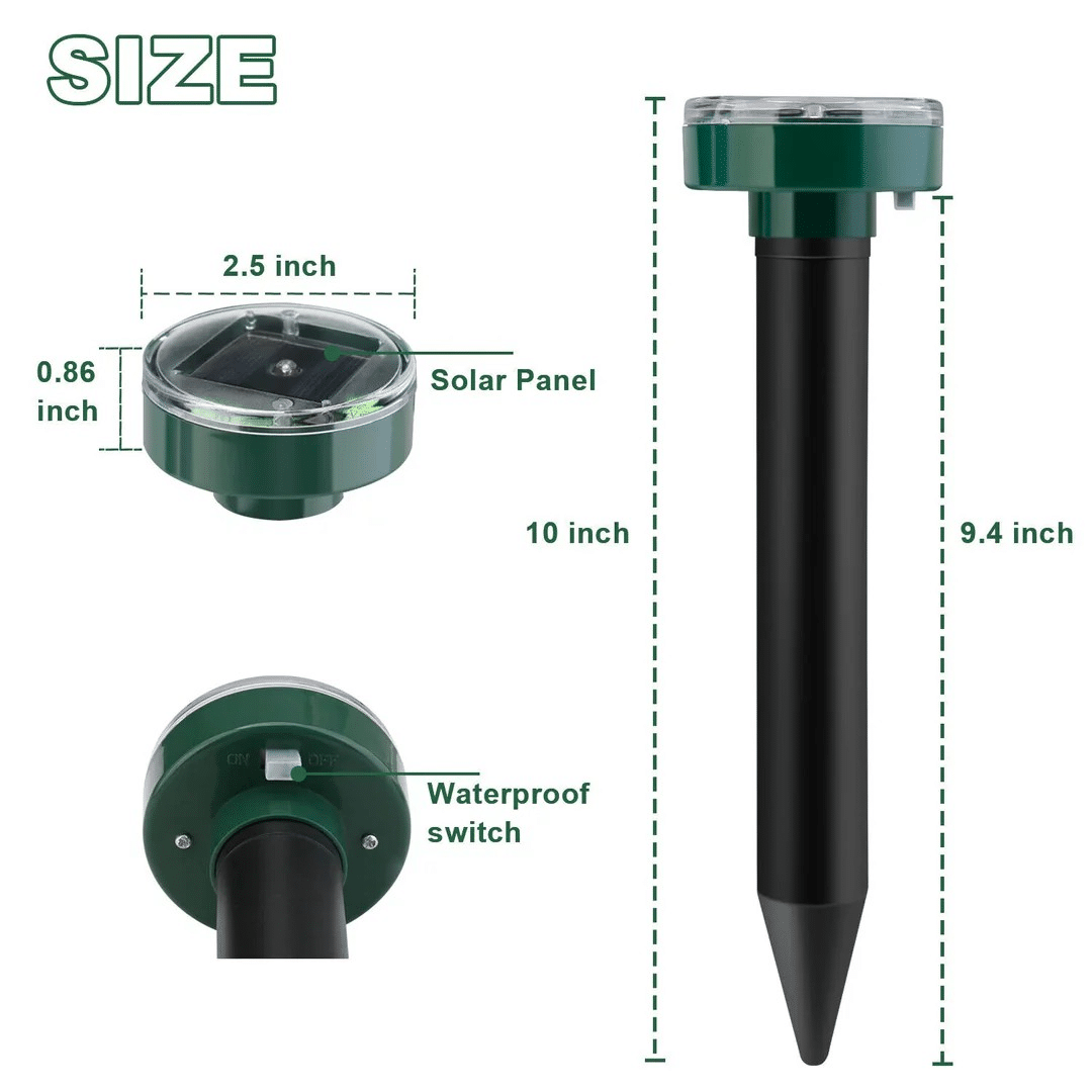 Слънчевият репелент за гризачи е чудесен начин да защитите вашата градина без използването на химикали или вредни методи. Благодарение на вградената соларна батерия, устройството функционира непрекъснато, издавайки звукови сигнали и вибрации, които отблъскват къртици, мишки и други подземни вредители. Тази система е икономически изгодна и екологично чиста алтернатива на традиционните методи за контрол на вредители.